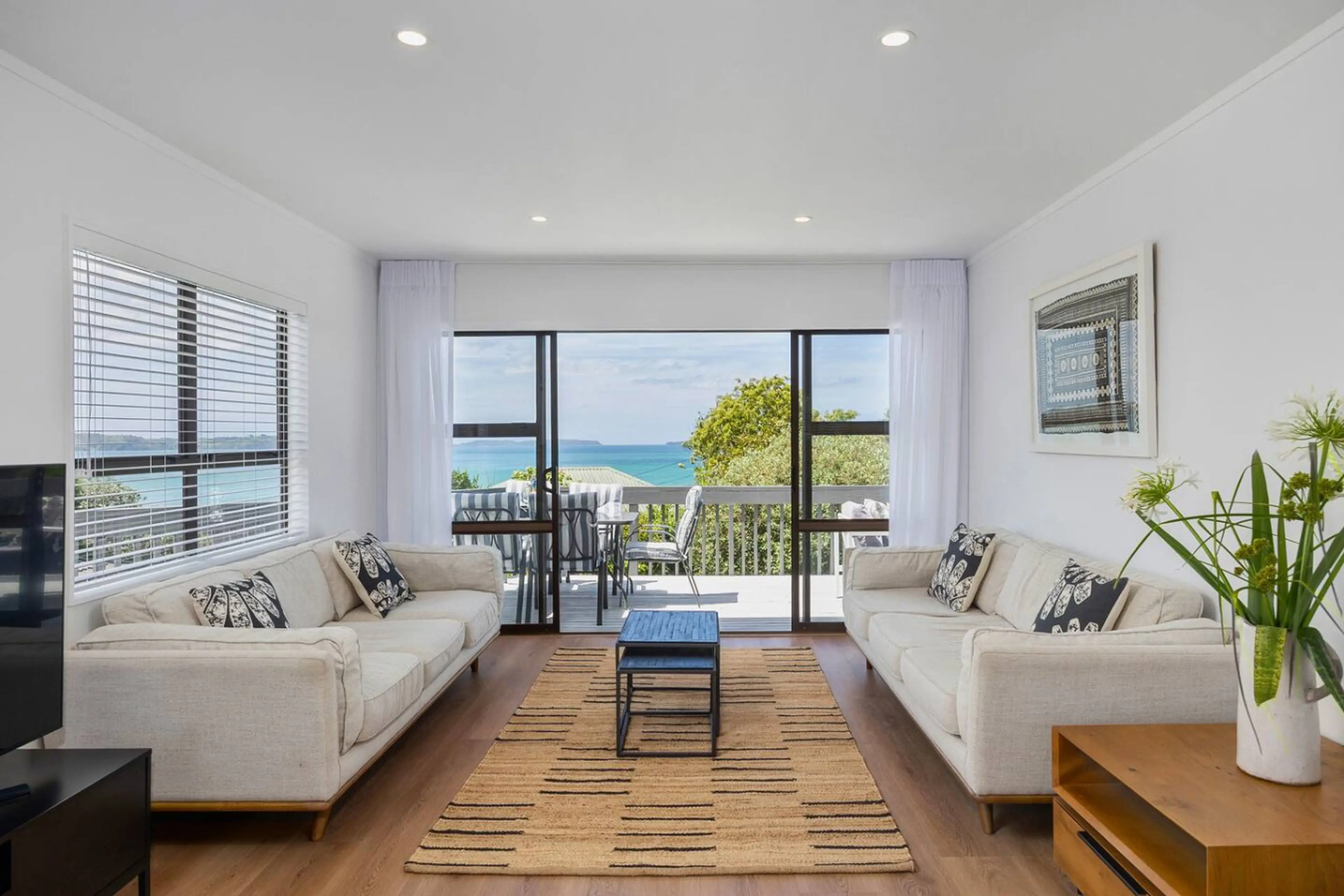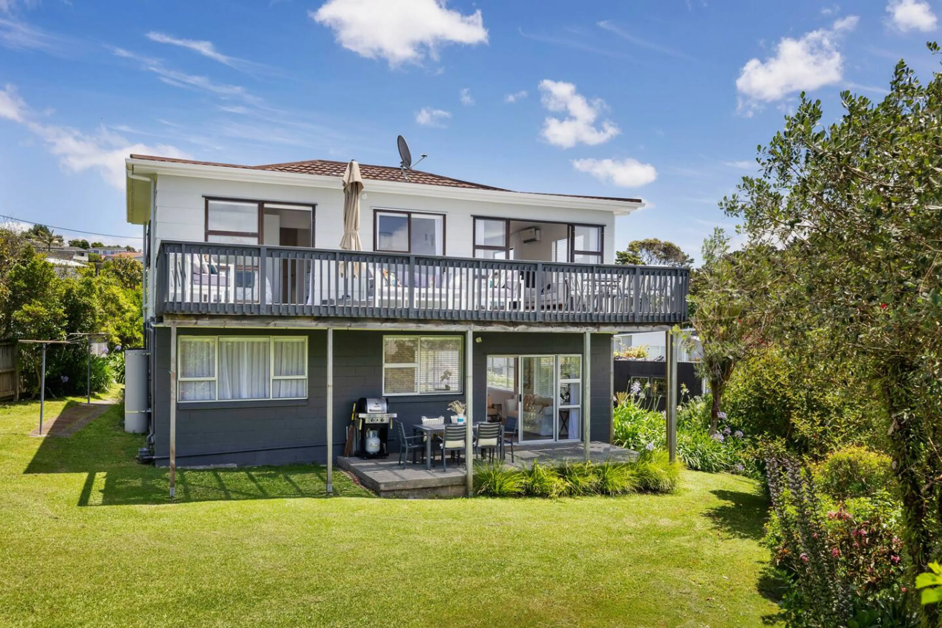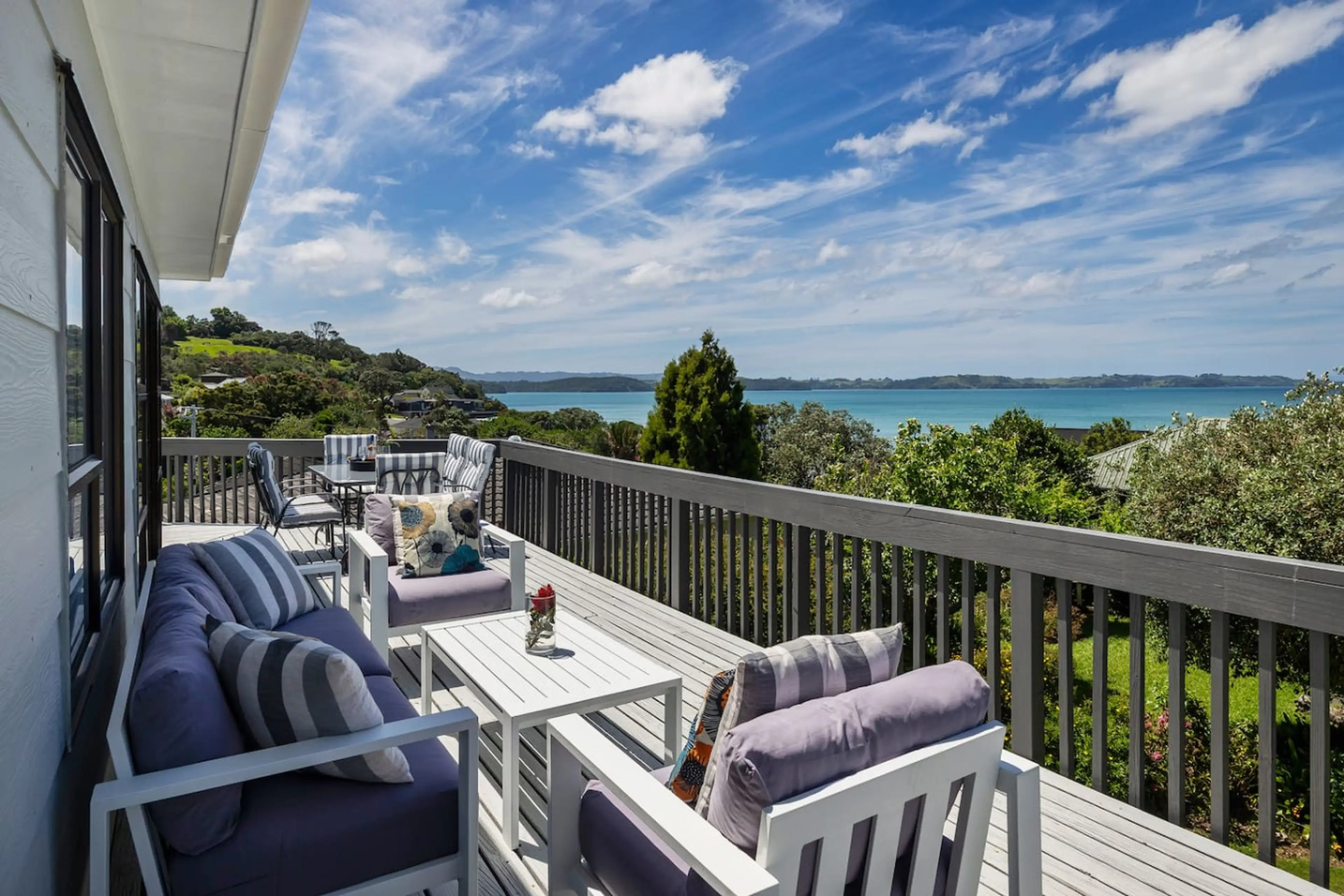 Relax at this spacious Algies Bay beach house just 4 minutes from the Beach. Set over two levels, it offers 4 bedrooms, 2 bathrooms, two living areas, a full kitchen and a second kitchenette downstairs with bar seating - perfect for families or groups. Enjoy sweeping ocean views, outdoor dining over...